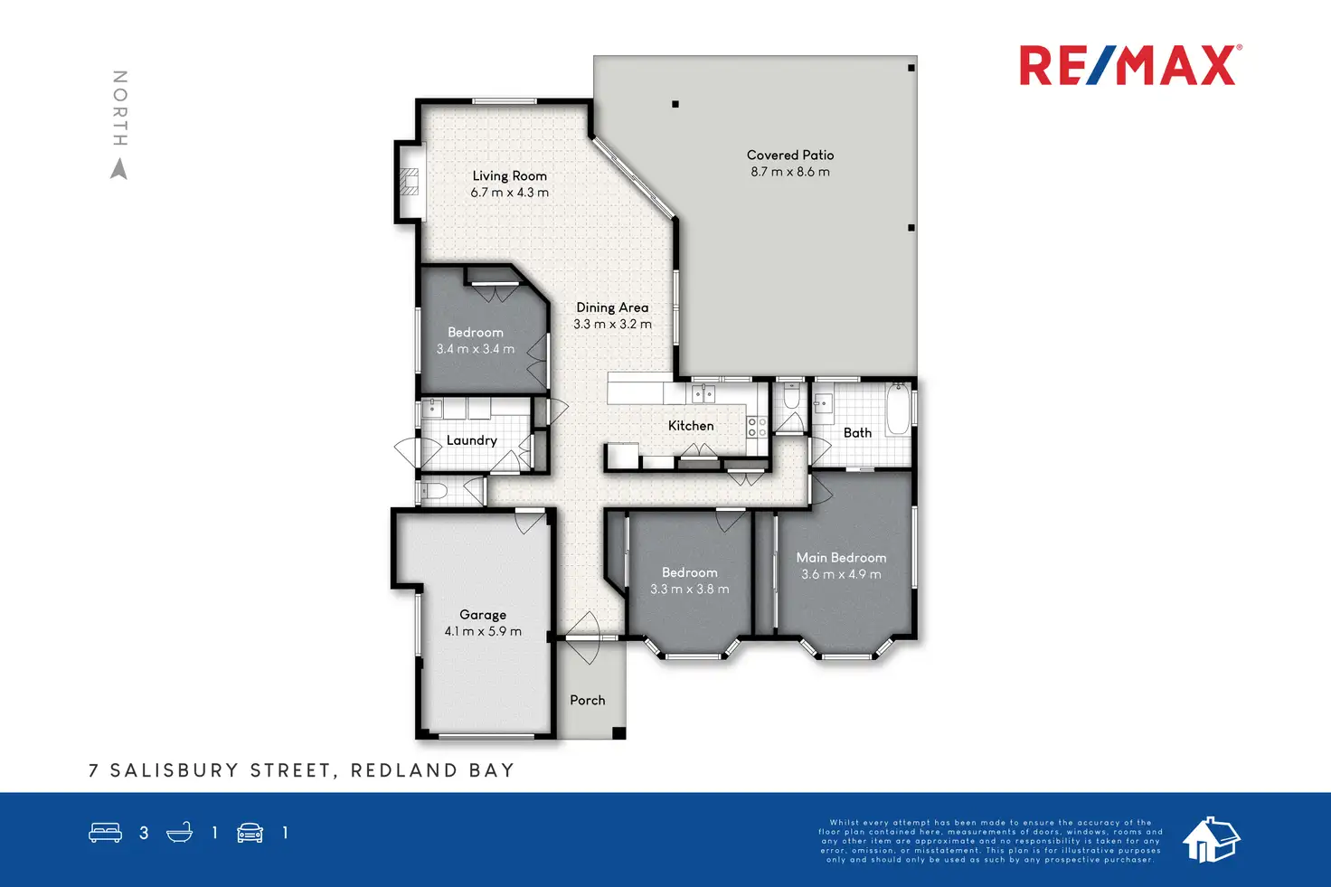3 Bed • 1 Bath • 2 Car • 800m²