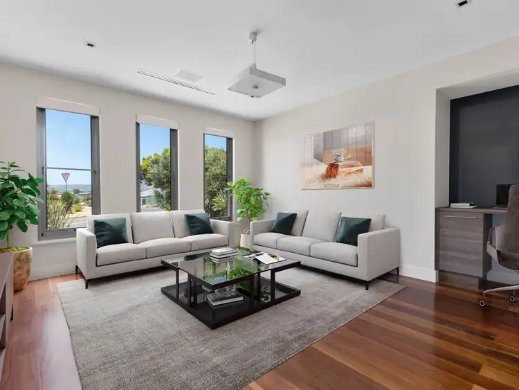A spacious front lounge features the opulence of polished bamboo flooring and even sports a built-in study desk.