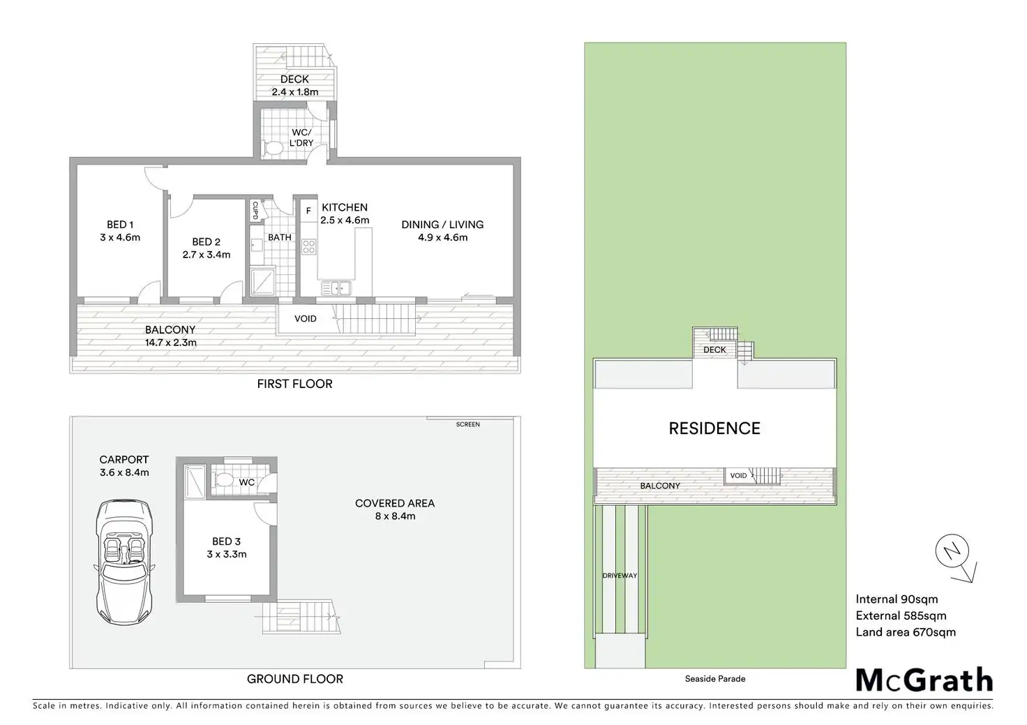 3 Bed • 1 Bath • 2 Car • 670m²