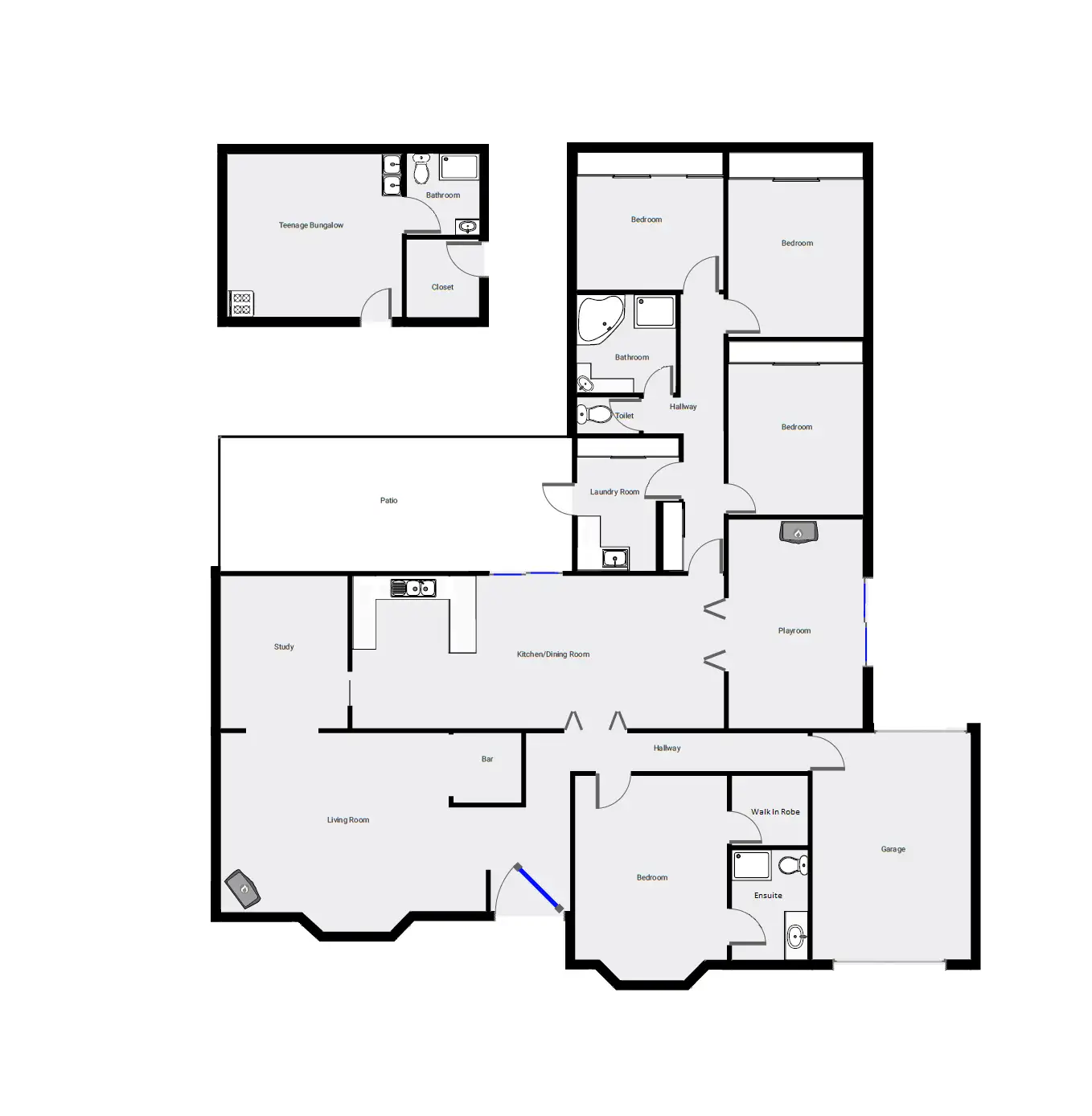 “Huge home with bungalow.”