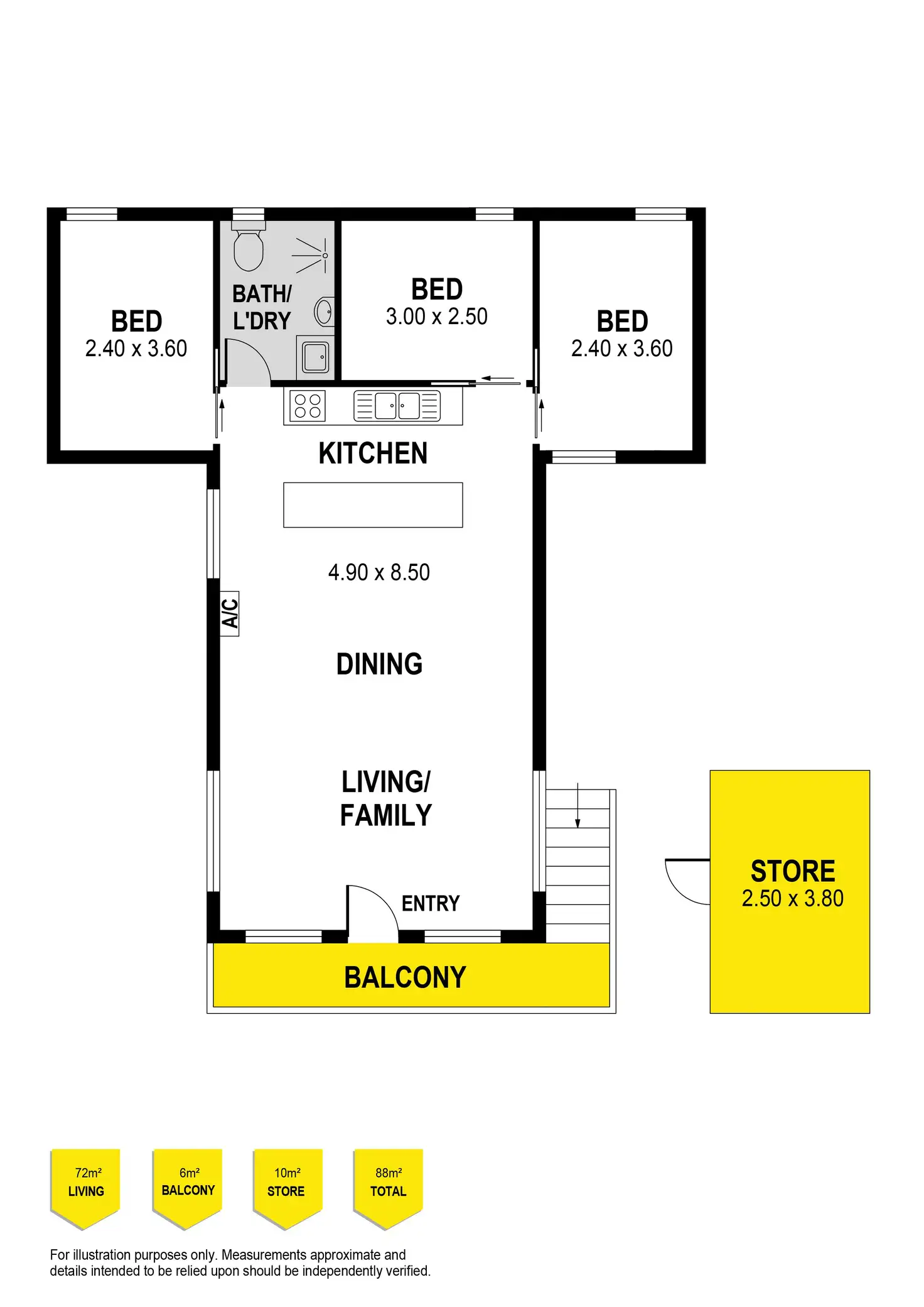 3 Bed • 1 Bath • 2 Car • 696m²