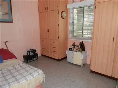 Tenure: Freehold Property Type: House House style: Lowset, Cottage Garaging / carparking: Double lock-up Construction: Fibro Joinery: Timber Roof: Iron Walls / Interior: Gyprock Flooring: Other (Lino) and Carpet Property Features: Safety switch, Smoke alarms Kitchen: Original, Modern, Separate cooktop, Separate oven, Upright stove, Extractor fan, Gas bottled, Pantry and Finished in (Timber, Other2 Stoves 1 Electric 1 Gas) Living area: Open plan Main bedroom: Double, Built-in-robe and Ceiling fans Bedroom 2: Double and Built-in / wardrobe Additional rooms: Rumpus Main bathroom: Separate shower Laundry: Separate Workshop: Combined Views: Urban Aspect: West Outdoor living: Entertainment area (Covered) Fencing: Fully fenced Land contour: Flat Grounds: Backyard access Garden: Garden shed (Number of sheds: 1) Sewerage: Mains Locality: Close to schools, Close to shopsLand details