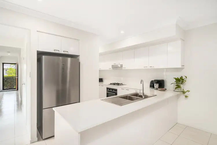 At the heart of the home, the stunning white kitchen is a standout feature, designed for those who love to cook and entertain. The L-shaped layout provides extensive bench space, perfect for meal preparation and hosting. A dual stainless steel sink adds practicality, while the gas stovetop with a sleek stainless steel rangehood ensures efficiency. With a dedicated microwave space for seamless integration and an abundance of pantry storage, this kitchen is designed for both functionality and aesthetics, making every meal a pleasure.