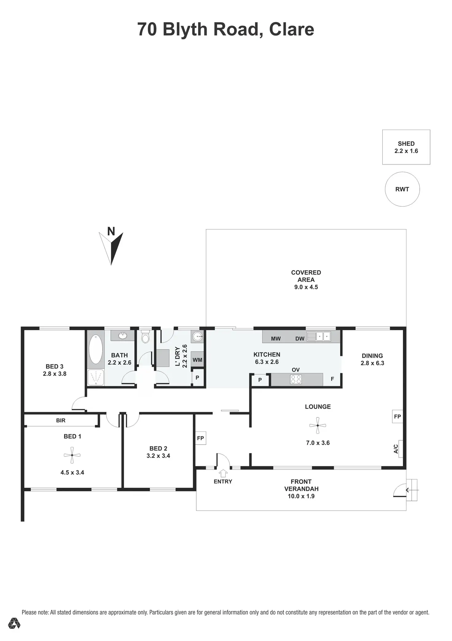 3 Bed • 1 Bath • 2 Car • 800m²