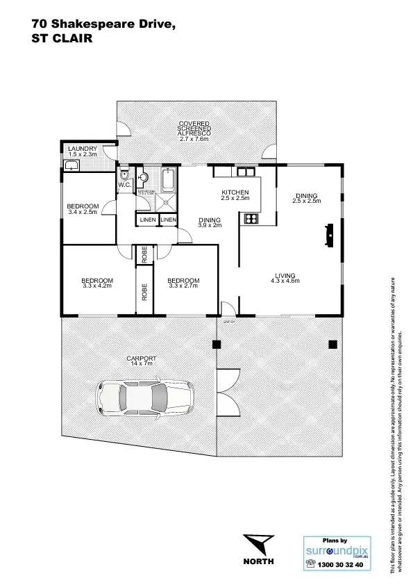 3 Bed • 1 Bath • 2 Car • 625m²