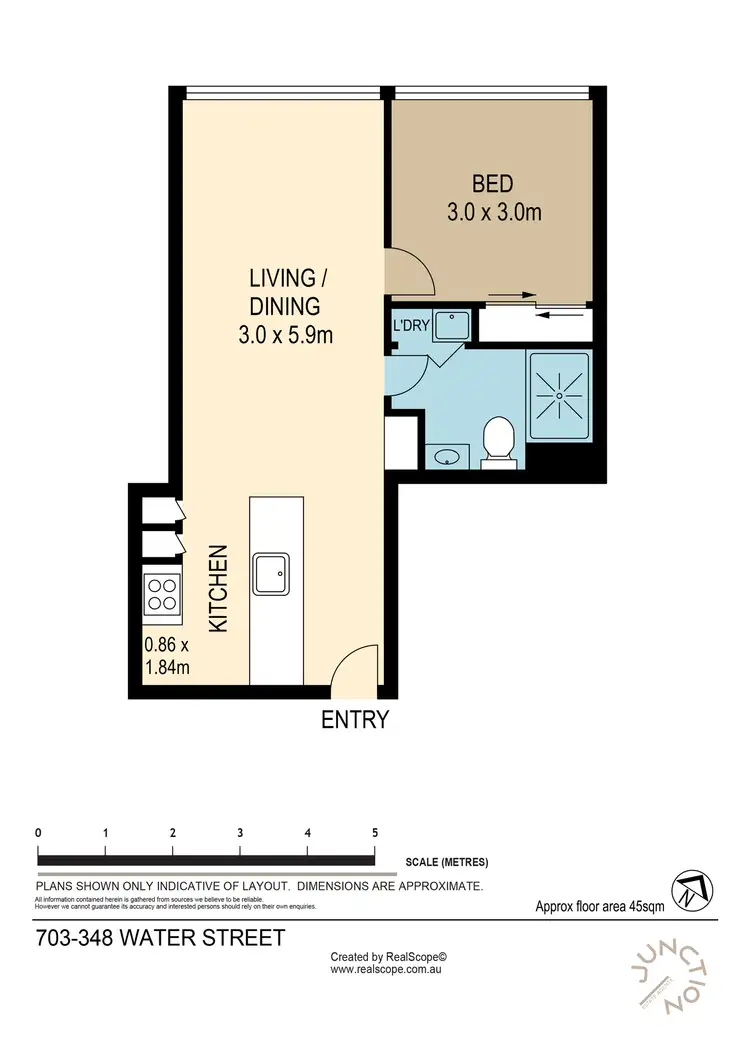 The bedroom is home to a large window for added light, and is spacious enough to fit both a queen bed and a desk. Either the bedroom or living space could be used as a work from home or study area for those that have the need. The bedroom also features a built-in wardrobe for conveniently storing all your important items out of the way and maintaining a clutter-free zone.