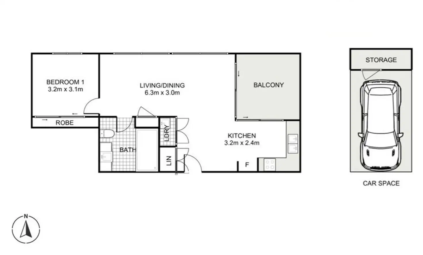 1 Bed • 1 Bath • 1 Car