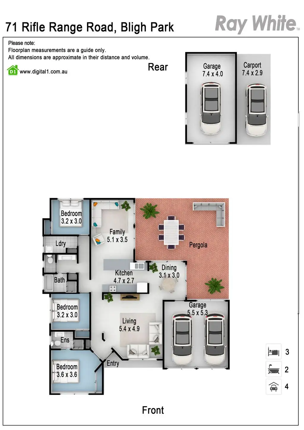 3 Bed • 2 Bath • 2 Car • 765m²