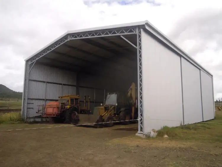 IMPROVEMENTS: Main residence: lowset 4 bedroom home with 3 bedrooms built-ins, 3 air conditioning units, eat in kitchen upright electric stove, walk-in pantry, built-in cupboards, formal lounge, new modern bathroom, separate toilet, rear entrance and laundry area, verandah on 2 sides, 1 x 5000 gallon tank, pressure pump x 2. Garage, double lock up garage with double roller doors and steel. Detached office, Donga, 1 room power connected