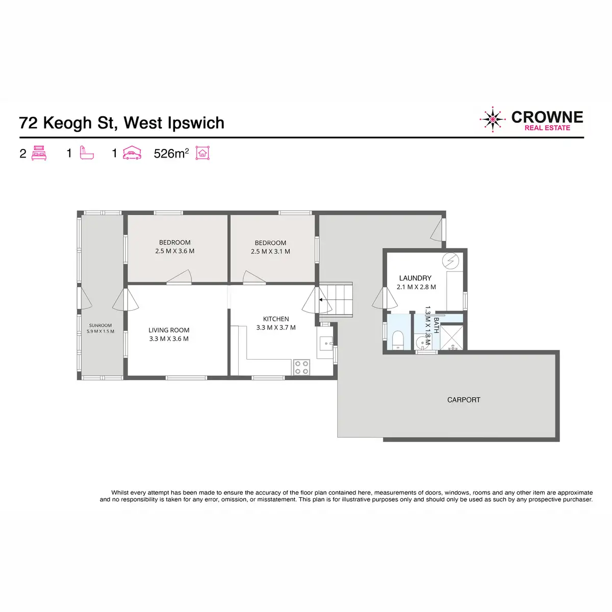 2 Bed • 1 Bath • 1 Car • 526m²