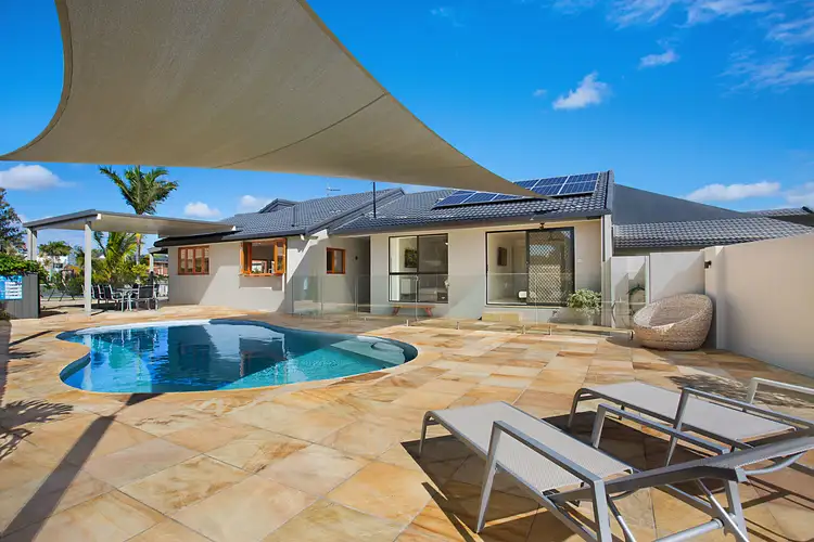 The stylish entry via expansive sandstone paving surrounding the lagoon pool immediately sets the tone for this resort-style home. The complete makeover and extension includes polarising internal epoxy floor coating, quality timber bi-fold doors and new central kitchen, with high-end stone benches, 2 pac cabinets and poolside servery to covered alfresco. The layout is perfect for entertaining, with open plan kitchen/dining and separate lounge area with raked ceilings, flowing to the 2nd covered alfresco area with stone benches, built-in bbq and bar fridge. Relax all year round whether by the pool or overlooking the waterfront position, with private boat ramp and pontoon. Only 150m by boat to main river and ocean access, what a place to raise your family and enjoy for years to come!