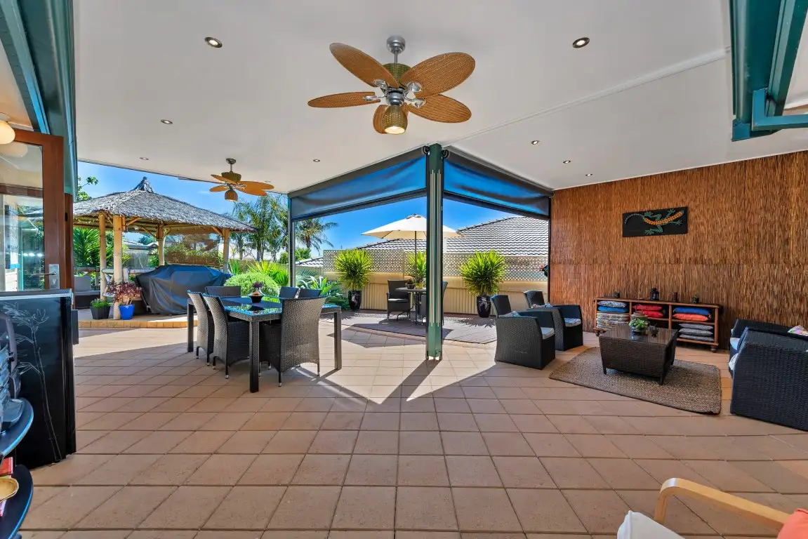 Large timber & glass bi-folding doors give you access from the family room to the beautiful North facing entertaining area. This large area is partially enclosed with screens and zip-track shade blinds, plus there is two ceiling fans and down lighting, making this space useable all year round. There is a second patio area with a Bali hut and a timber deck area for when you would like to sit out in the sun. To the back of the block is a lawn area, beautifully established low maintenance garden beds and a large water feature. Down the other side of the home is a long carport behind a secure roller door. This carport is over 15m long to accommodate multiple cars for secure off-street parking. This also leads to drive through access to a good size shed with lights & power. To the front of the wide block is a space that could be easily adapted to store a boat or caravan. On the roof is a generous 4kw solar system for added energy efficiency and a rain water tank.
