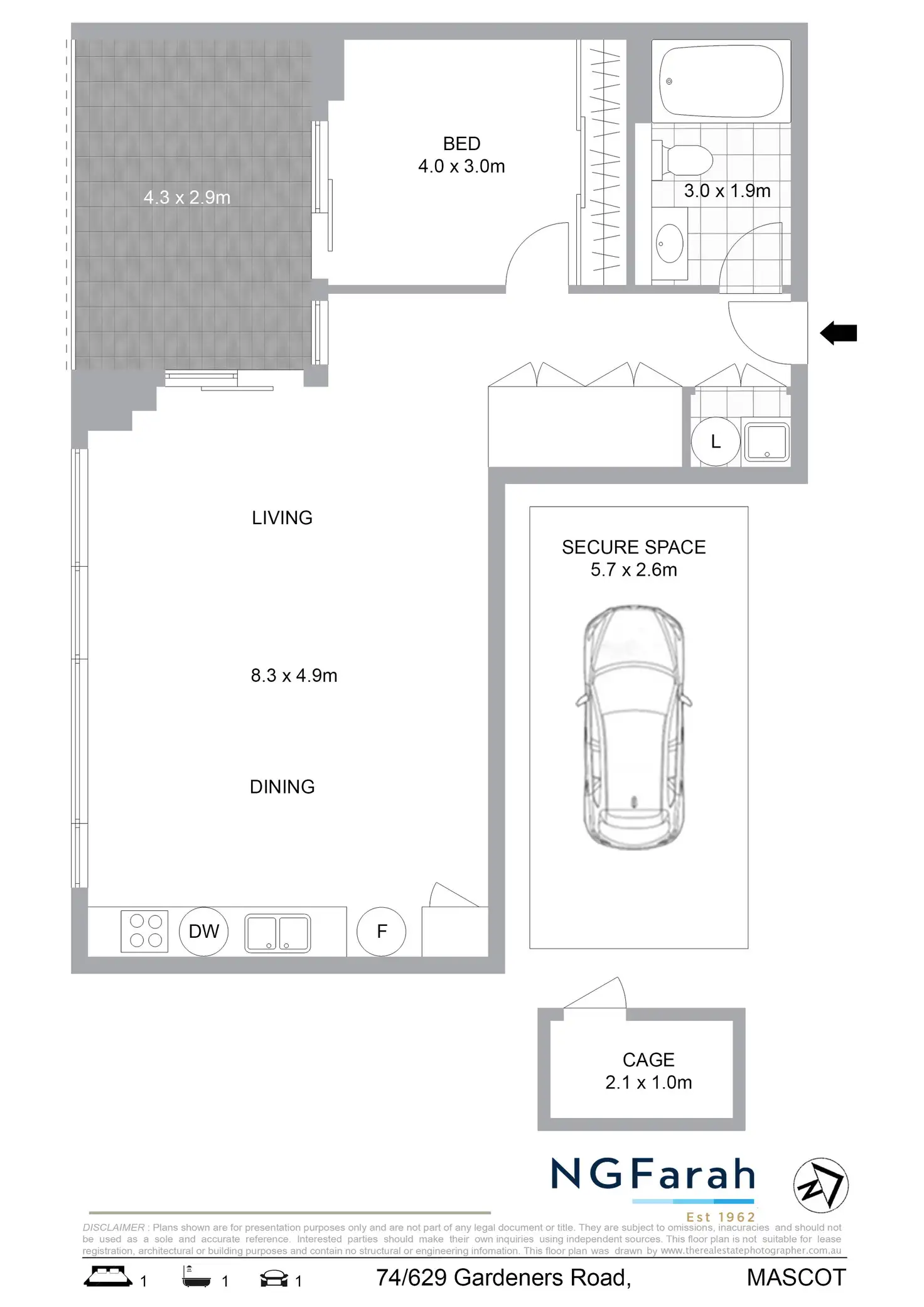 1 Bed • 1 Bath • 1 Car