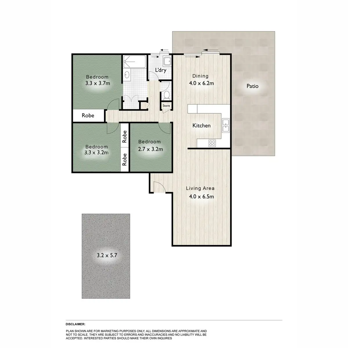 3 Bed • 1 Bath • 1 Car • 400m²