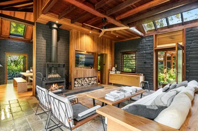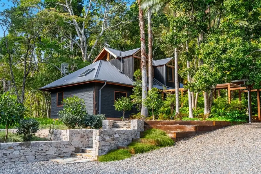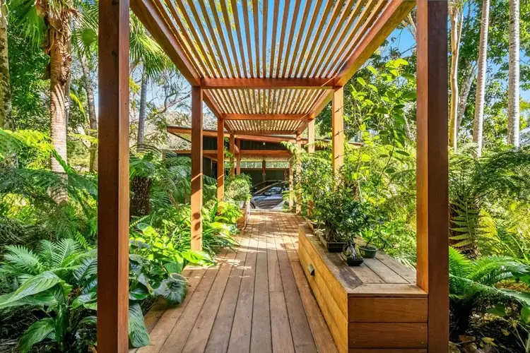 A long and inviting drive leads you to this serene, architect-designed retreat set on 2.01 hectares (approximately 5 lush acres) of stunning lush subtropical gardens. Among the ancient quandong, poinciana, and fig trees, you'll discover assorted fruit trees, creating a true gardener's paradise.