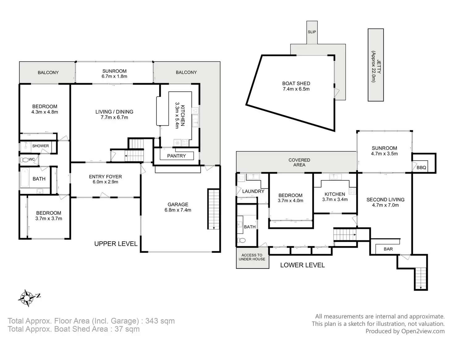 Be welcomed home into a generously sized entrance/ foyer and walk in to the first expansive living area overlooking the water. This fantastic two-level residence has a free-flowing floor plan which encompasses a light filled open plan living, dining and spacious kitchen with a large pantry. This could easily be fitted out to make a butler's kitchen, 2 large bedrooms with built-in robes and large bathroom, separate toilet all located on the upper level. Then downstairs, the lower level boasts a separate kitchen, living, 1 bedroom with built-ins, another bathroom and laundry with internal access from garage and upstairs. Both levels offer plentiful storage.