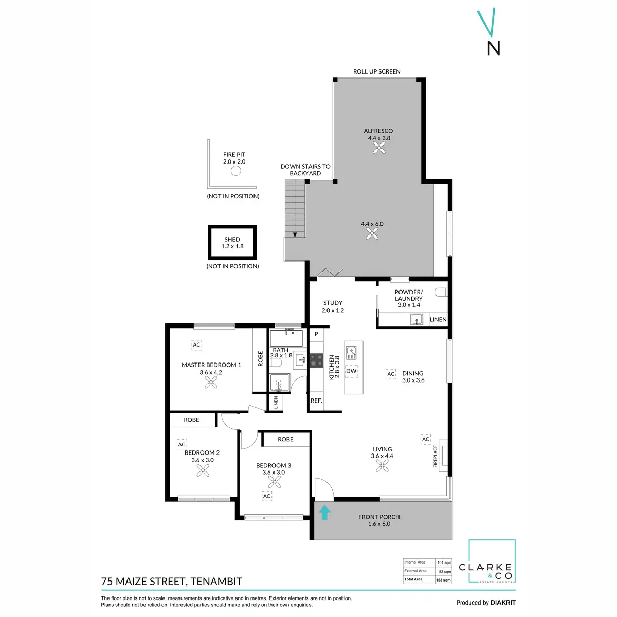 - Fully fenced backyard with a grassed lawn, established gardens, a garden shed and a new firepit area