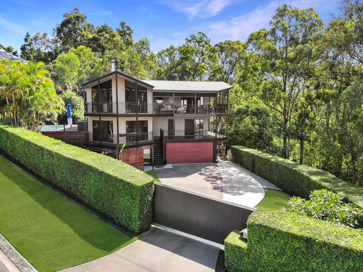 This North Easterly aspected architecturally designed home is set on a prime 9308m2 landscaped allotment and positioned in one of Mudgeeraba's most exclusive streets. The contemporary style home is spread out over 3 levels and perfectly designed for dual living with multiple options for the extended family or potential income from Air bnb with multiple different options on offer.