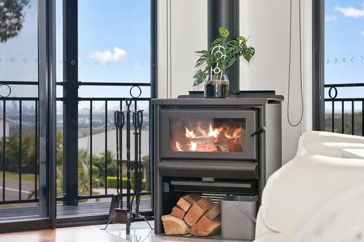 • Large living area with spotted gum timber flooring, air conditioned, combustion wood heater, high ceilings with stunning views