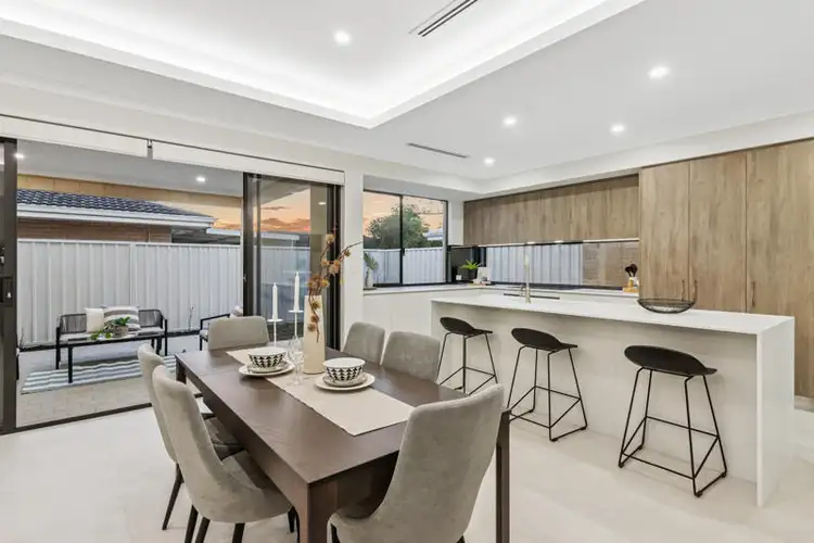 ...the light filled, open plan kitchen, living and dining zone which unfolds with a sense of grace and generosity. Anchored by an elegant, recessed ceiling and large sliding doors which peel to create a seamless indoor-outdoor flow, the conversation between the two is simply sublime.