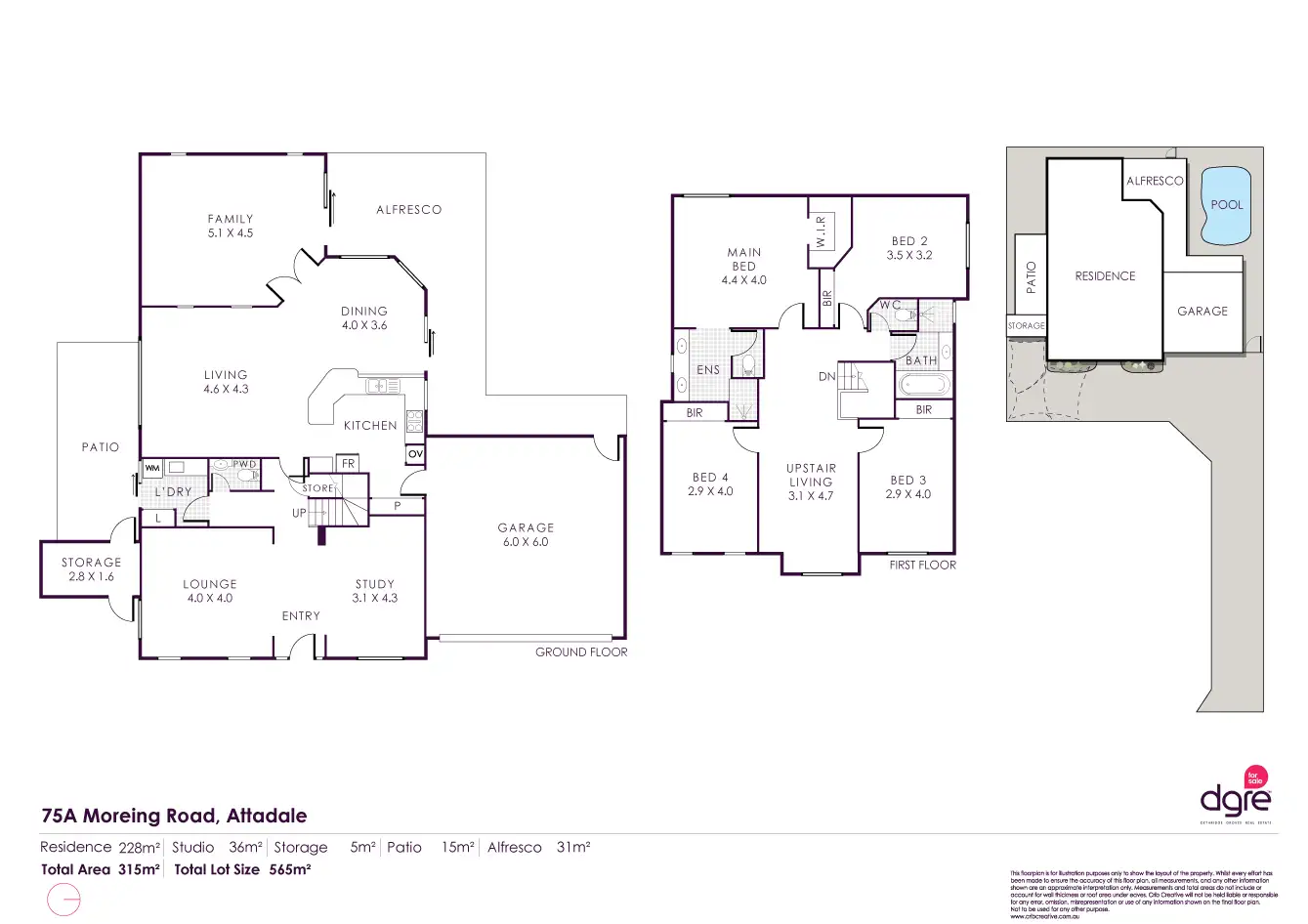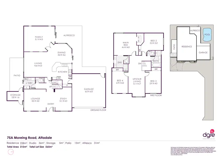 Land size 565 sqm, house size 315sqm total