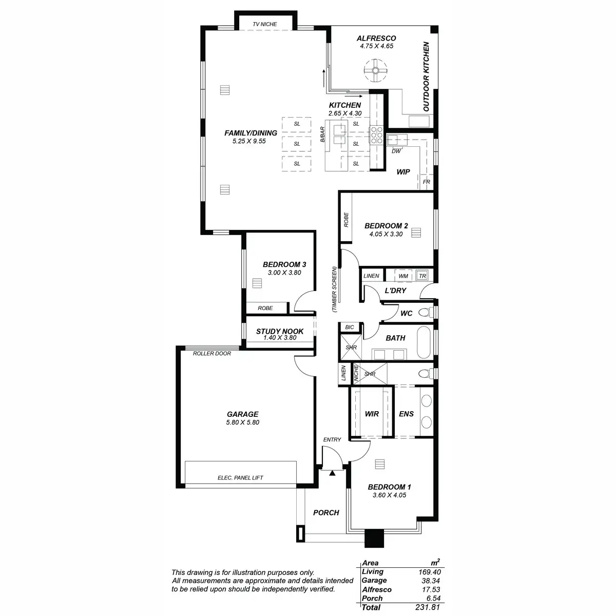 - All-weather alfresco with in-built BBQ kitchen, LED lighting & ceiling fan