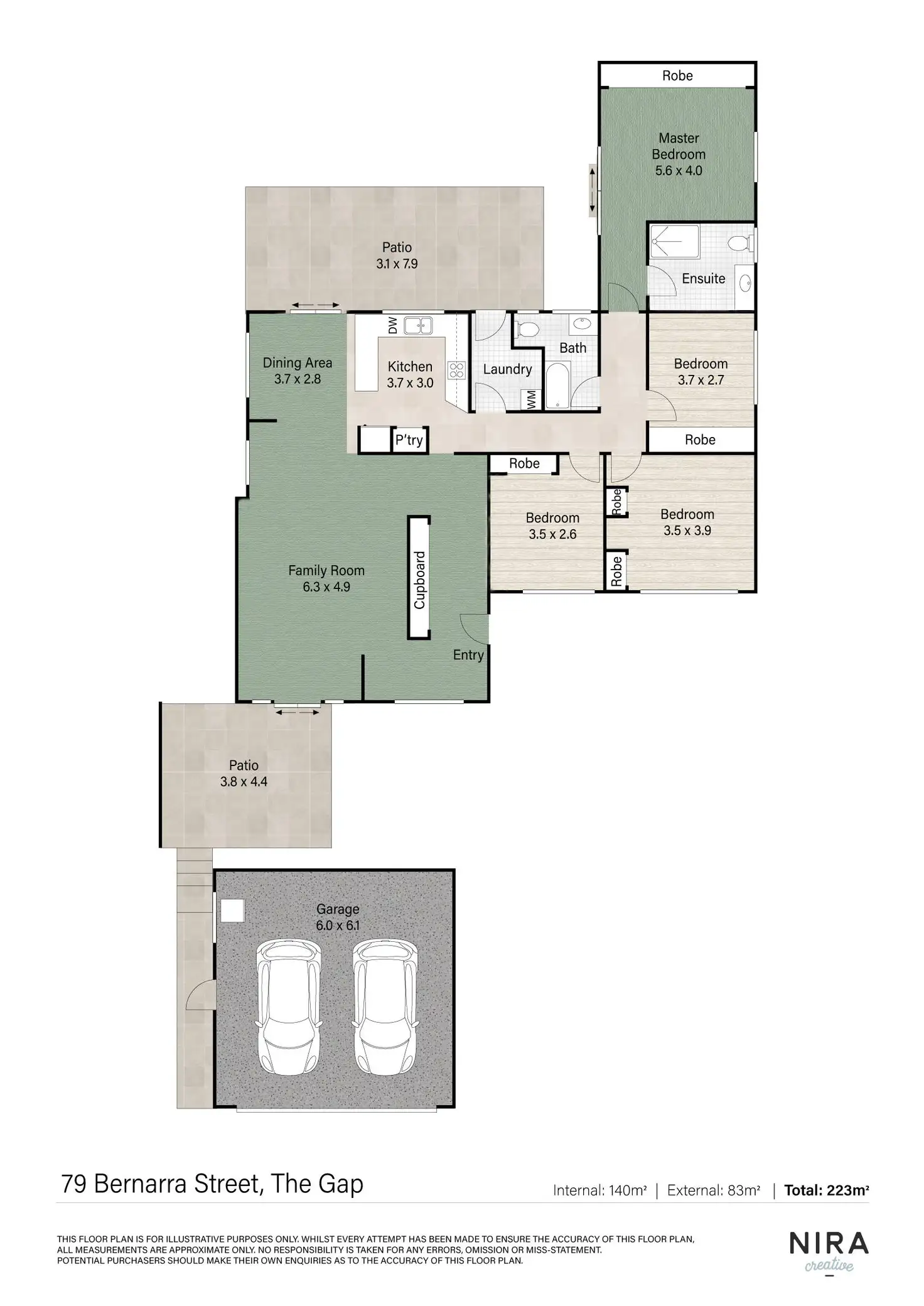 • Master bedroom with ensuite, full wall mirrored wardrobe + aircon
