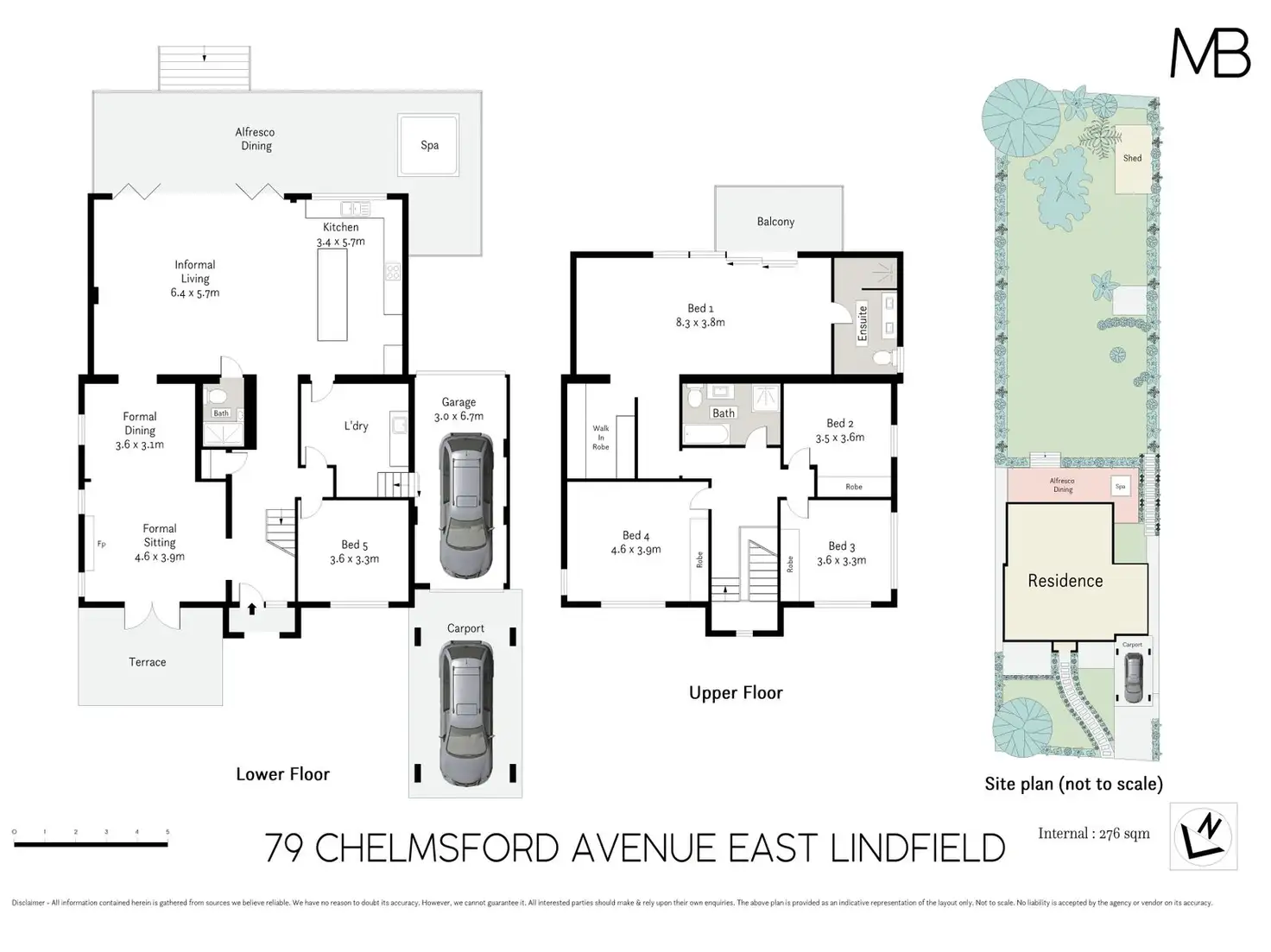 Five generous bedrooms, four upstairs, fifth/guest downstairs, built in robes