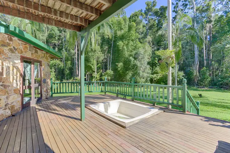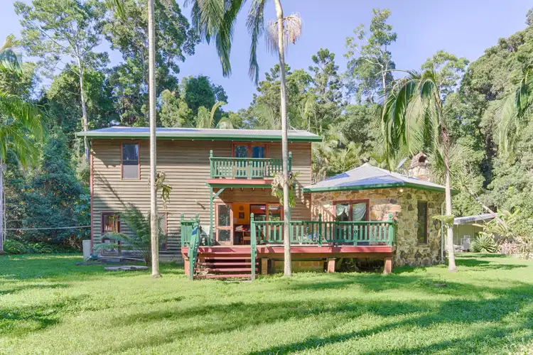 Tucked away near the end of a private access road lies a rare and beautiful Rain Forest Retreat. Built in harmony with the surrounding wonderland of native rainforest, the 4 bed room, 2 bath, 2 story elevated home sits proudly in a cleared 1 acre on 9.5 acres of remnant rainforest. The well-built, all weather bearing home boasts features that catch the eye at every glance -