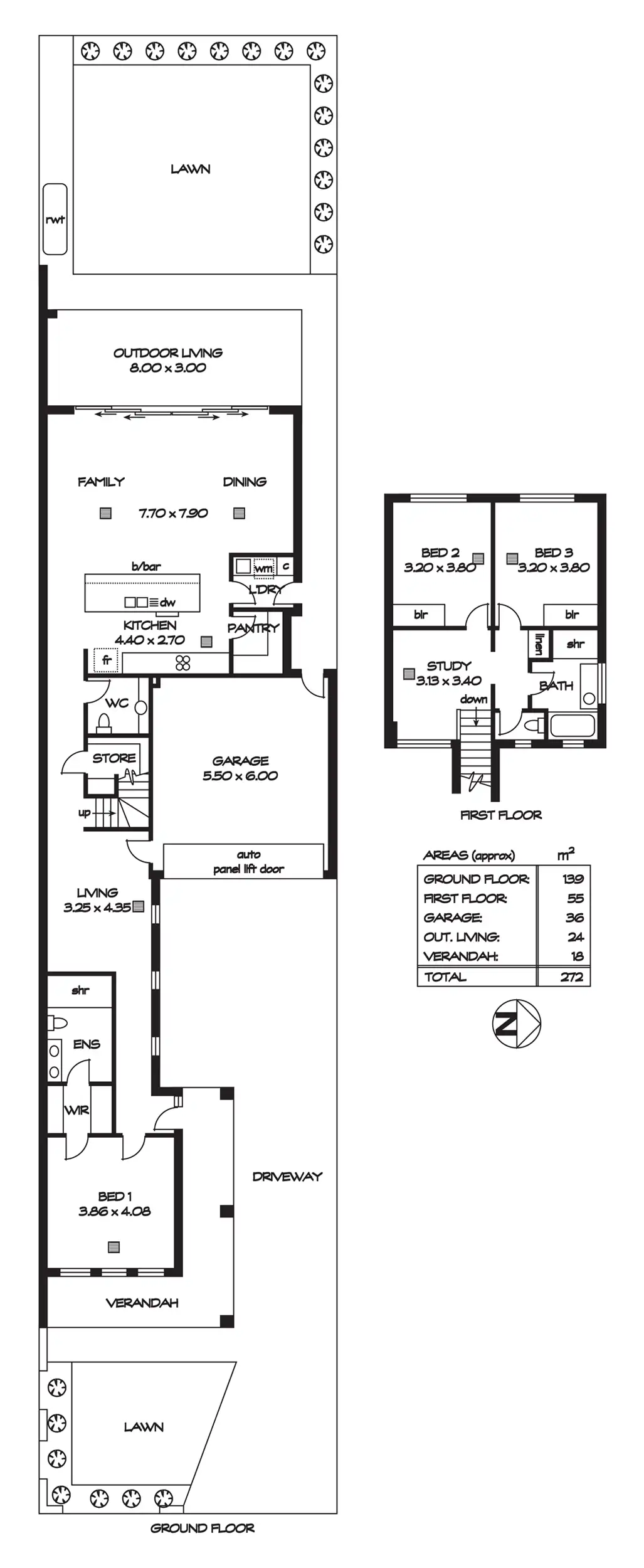 A ground floor powder room provides handy amenities for both residents and guests while a double garage with automatic panel lift door easily accommodates the family cars.