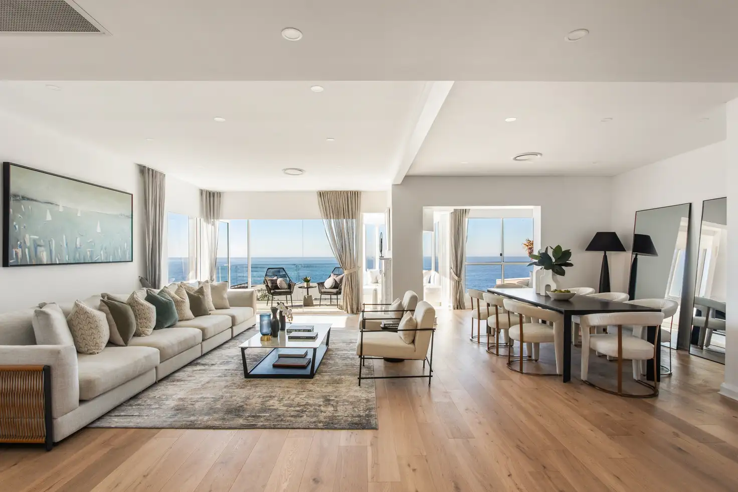 - Sun filled open living/dining extends to view-swept balcony