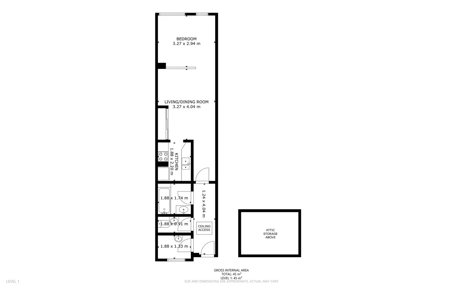 1 Bed • 1 Bath • 0 Car • 45m²
