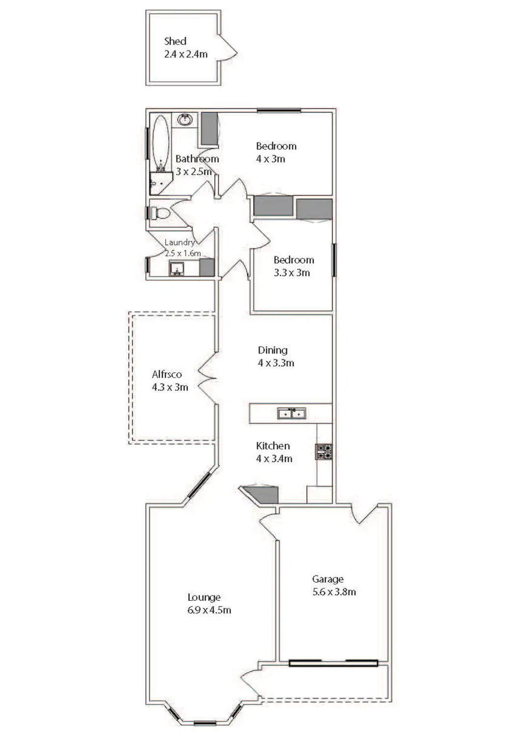 2 Bed • 1 Bath • 1 Car • 300m²