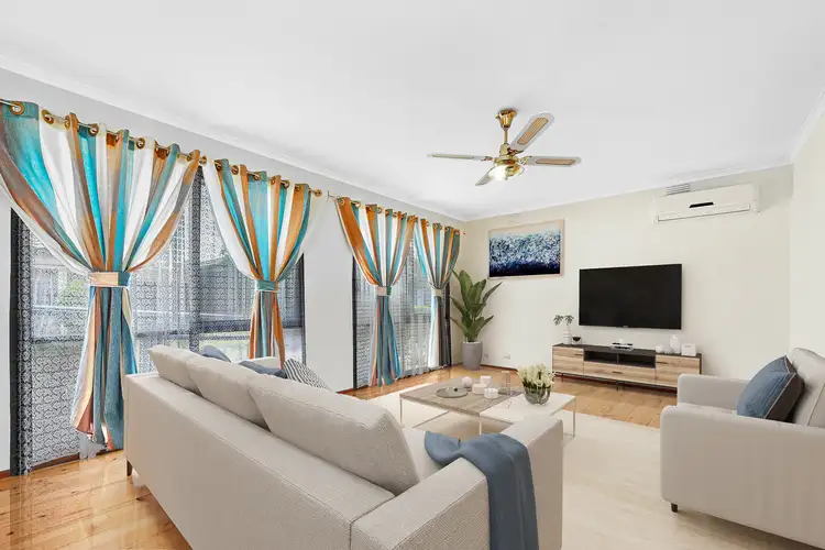 Comprising three spacious bedrooms with built-in-robes featuring mirrored sliding doors, a distinct living and dining area adorned with hardwood timber flooring, and a well-appointed kitchen complete with a gas cooktop, oven, griller, tiled splashback, double sink, and ample cupboard space. Step out into the expansive rear yard, ideal for hosting gatherings with loved ones.