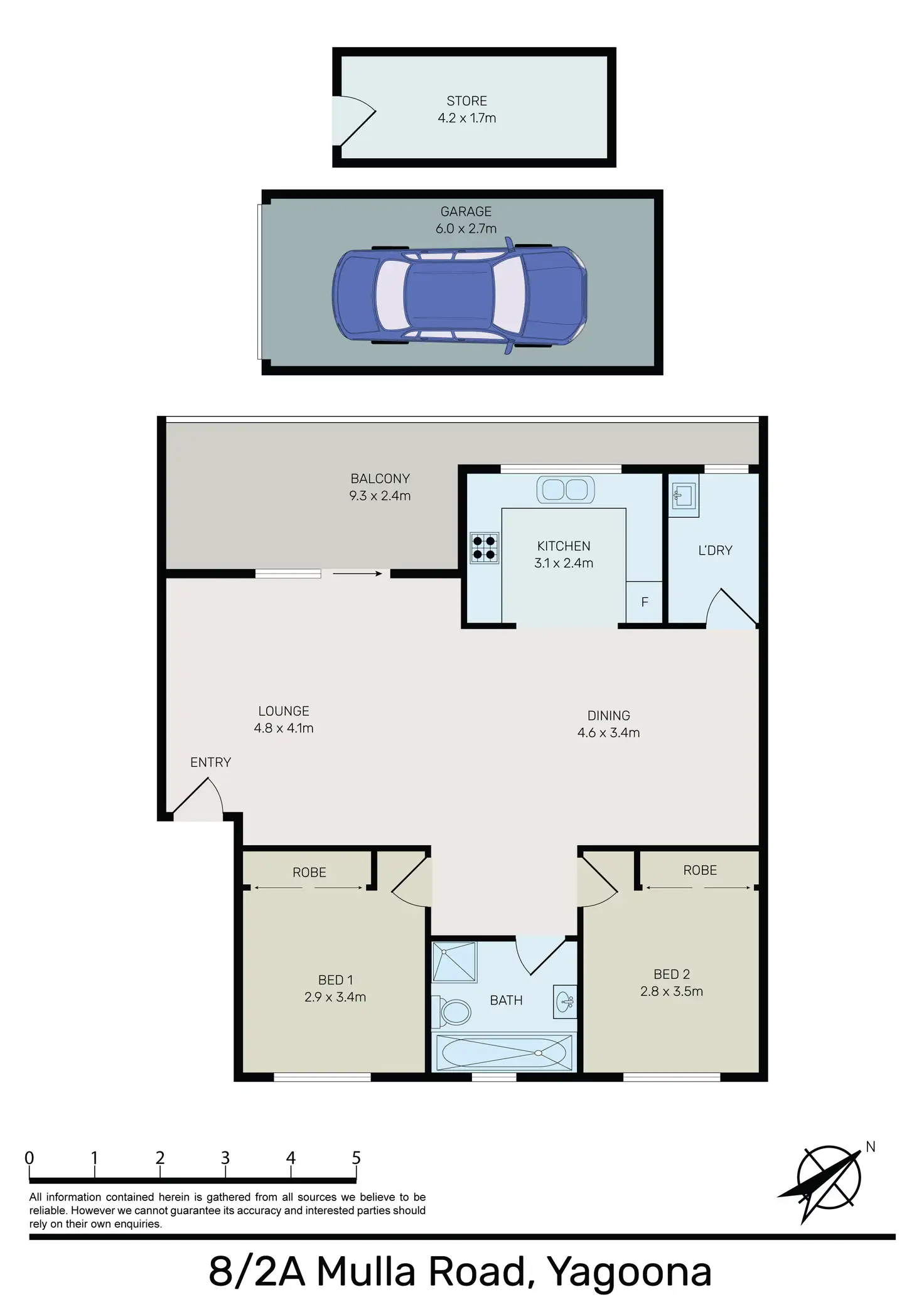 2 Bed • 1 Bath • 1 Car • 114m²