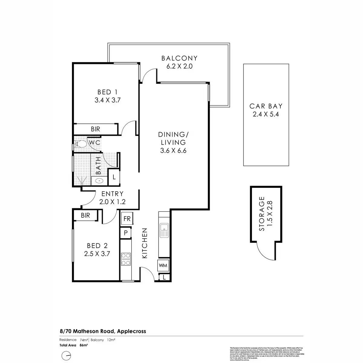 2 Bed • 1 Bath • 1 Car • 86m²
