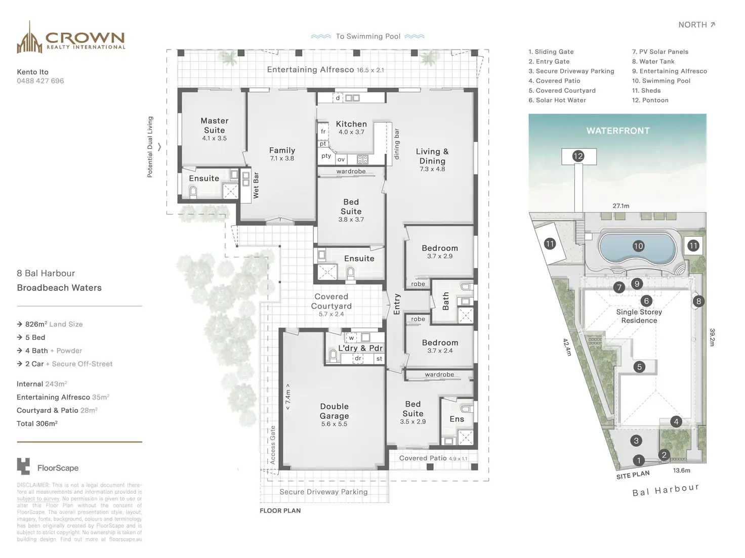 5 Bed • 4 Bath • 2 Car • 826m²