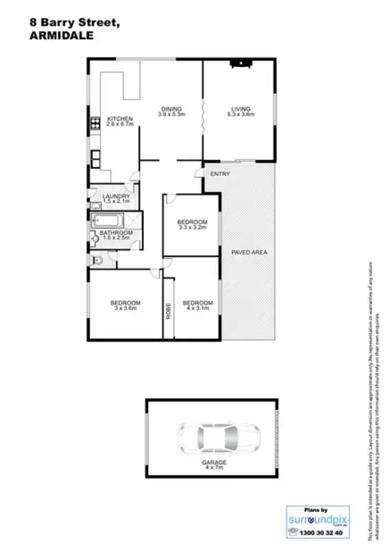 3 Bed • 1 Bath • 1 Car