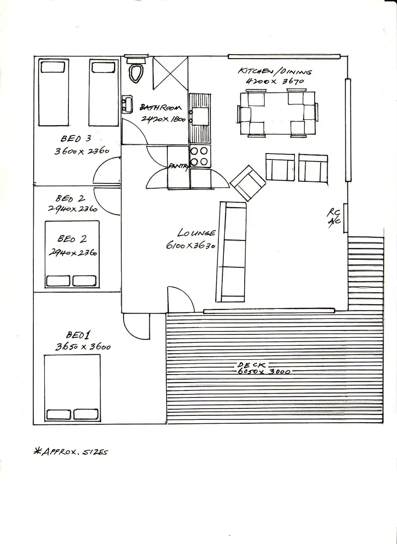 “Neat & tidy 3 BR holiday home with polished floorboards throughout, RC A/C”