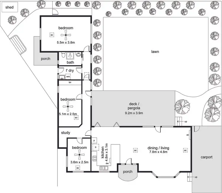 Bedroom two has built-in robes and both bedrooms 2 and 3 also feature ceiling fans for keeping cool in summer.