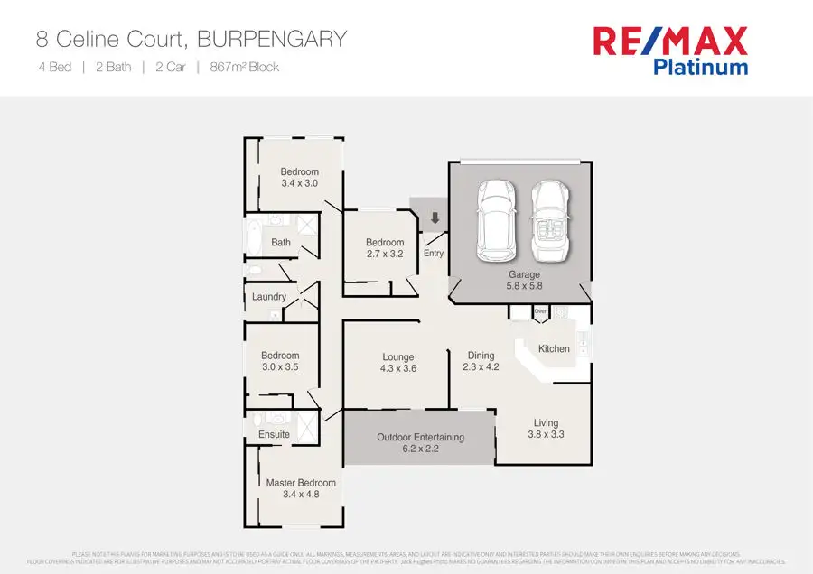 4 Bed • 2 Bath • 2 Car • 867m²