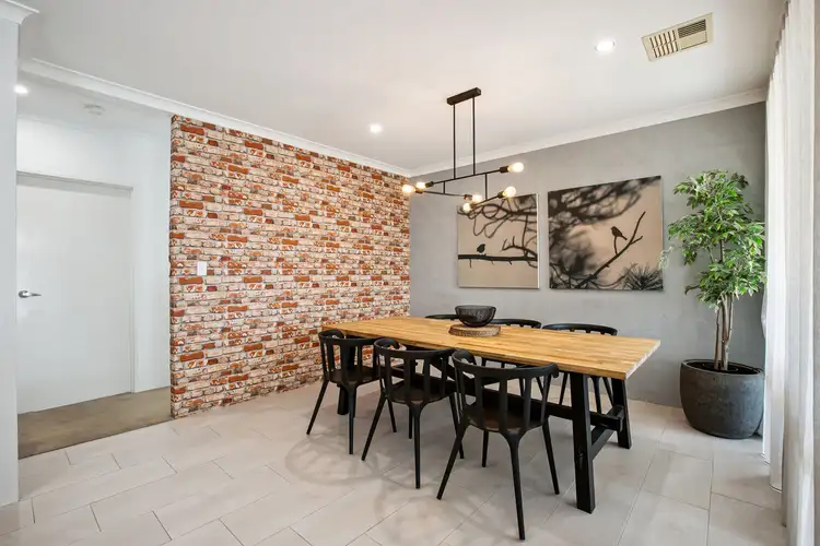 A spacious open-plan family, dining and kitchen area is where most of your casual time will be spent and impressively boasts a walk-in pantry, sleek stone bench tops, an island breakfast bar with double sinks, feature subway-tile splashbacks and quality stainless-steel range-hood, gas-cooktop and under-bench-oven appliances.