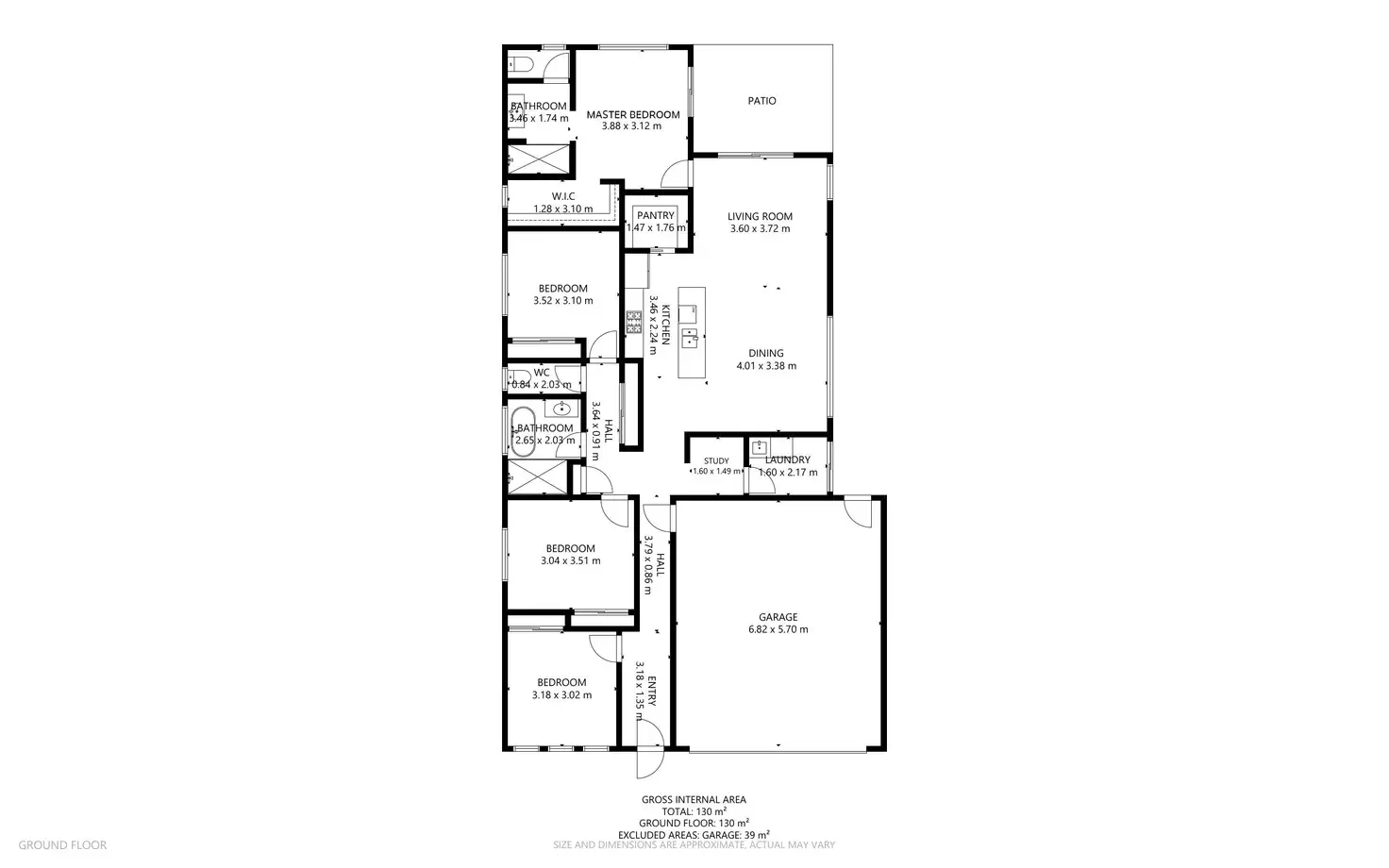 The kitchen is well equipped for modern living, offering a gas cooktop, electric oven, dishwasher, excellent cupboard storage and a generous walk-in pantry, perfect for busy households. The family bathroom includes a separate bath, shower and vanity, complemented by a stand-alone toilet for convenience. A dedicated study nook is cleverly tucked into the hallway leading to the laundry, providing the ideal place for work or study.