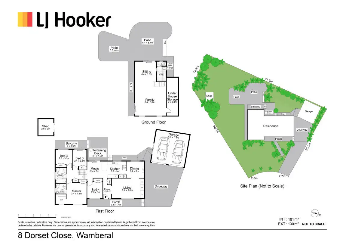 - Additional features include air-conditioning, ceiling fans, under house storage, plenty of internal storage, double garage, garden shed
