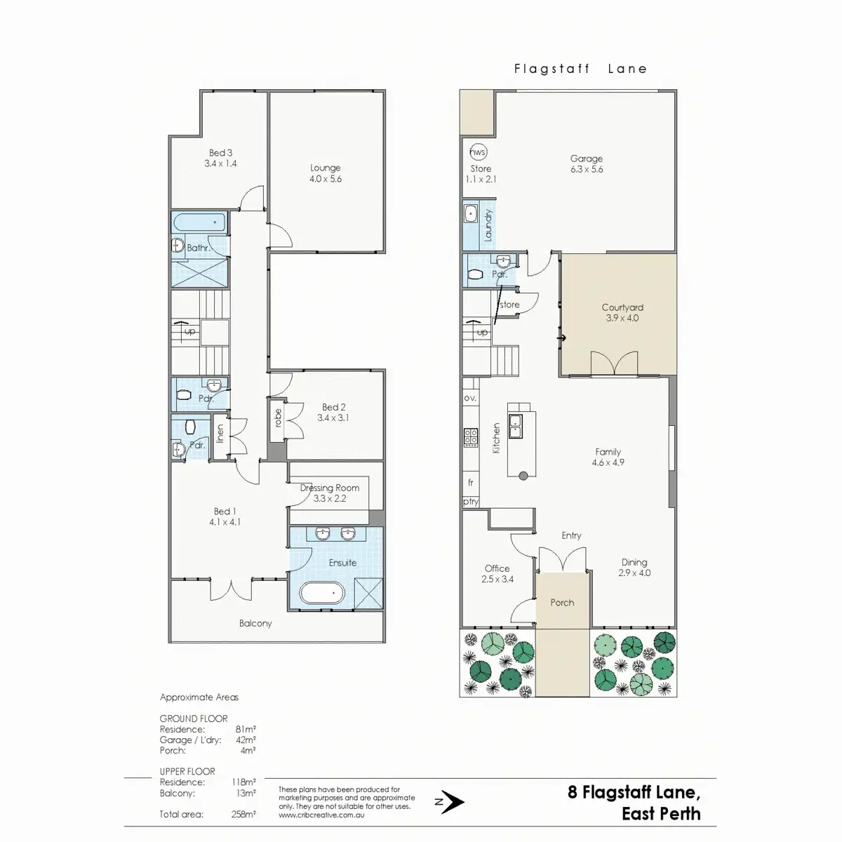 - Two car secure garage with access from rear lane way