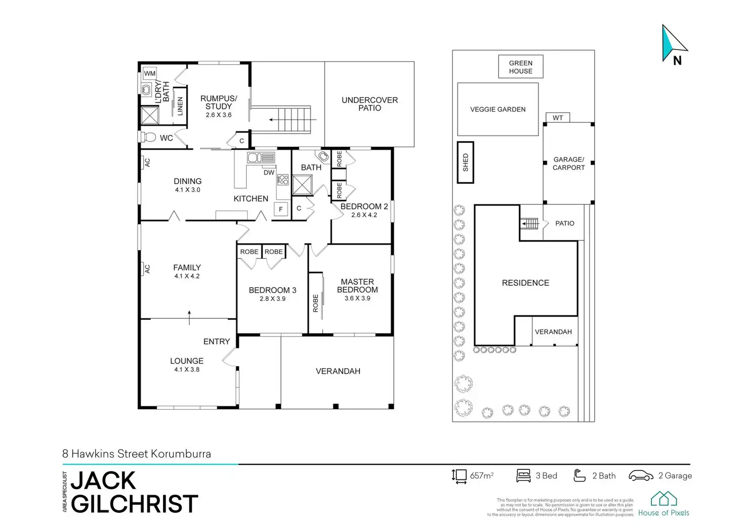 3 Bed • 1 Bath • 2 Car • 657m²