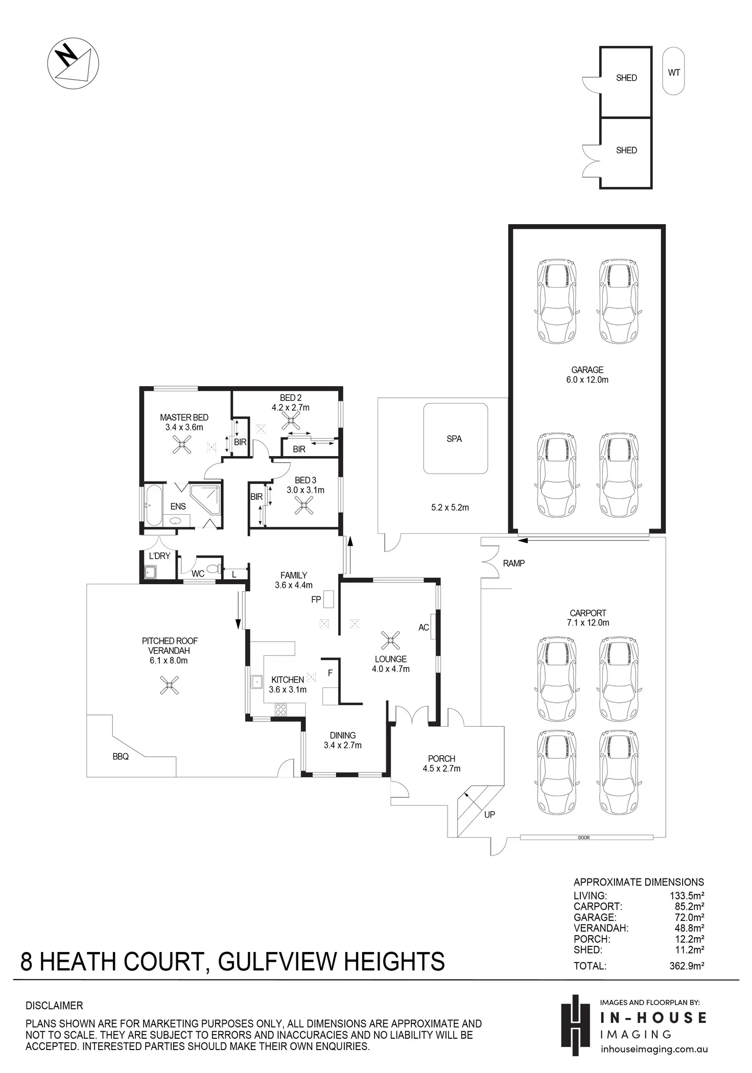 • Large Secure parking for up to 10 vehicles (carport parking for 4-6 vehicles under the carport + additional 4 vehicles in the shed