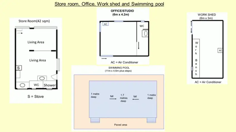 - swimming pool (11m x 4.6m) with stairs at both ends and plenty of enclosed paved area for relaxing by the pool