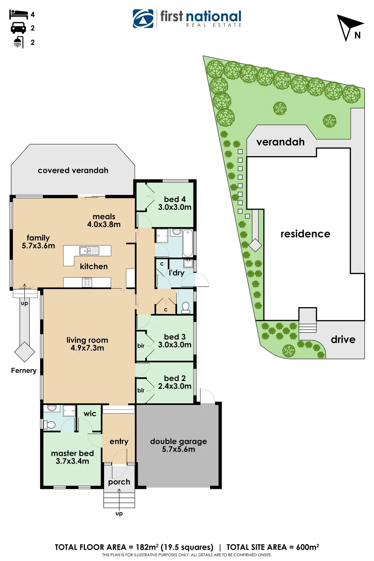 4 Bed • 2 Bath • 2 Car • 600m²