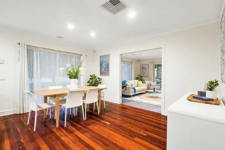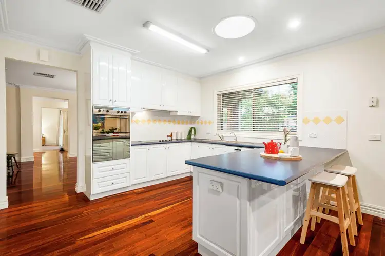 Proudly occupying a prime corner allotment of 750sqm approx., the generously-proportioned house boasts light filled spaces and an abundance of pleasing features. Your eyes will be drawn to decorative cornices, high skirtings and an expanse of rich Jarrah floorboards; these flow through the home’s entry, the gorgeous formal living area, and the spacious kitchen/dining area, seamlessly connecting the attractive spaces.